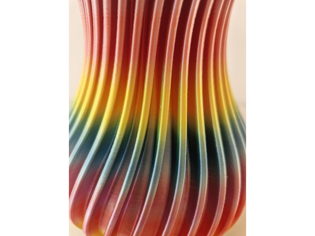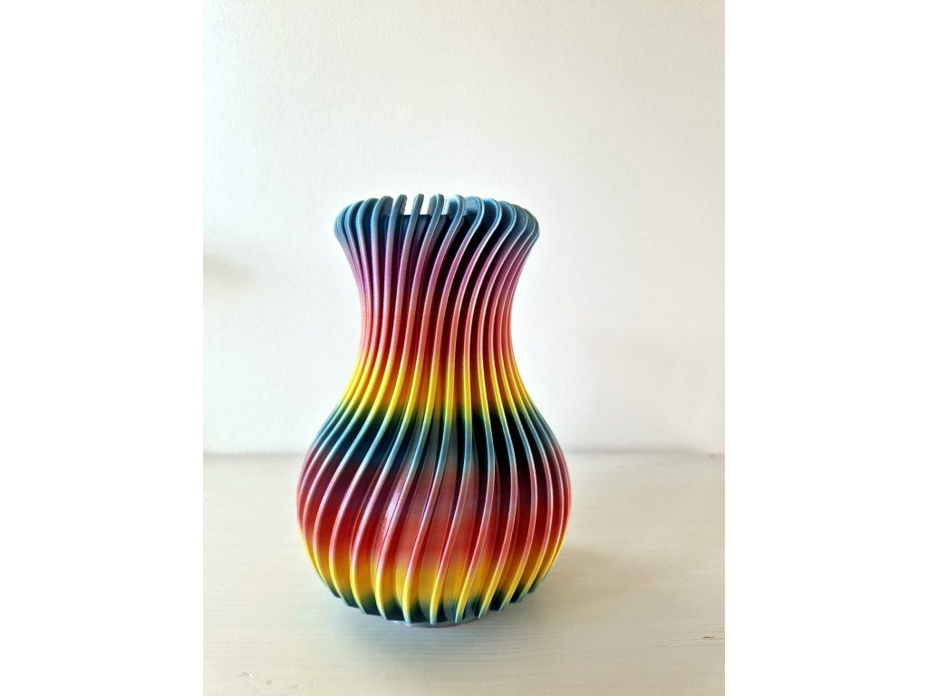 Tato zářivá 3D tištěná vázička vznikla z nadšení pro duhový filament, jehož barevné přechody nejlépe vyniknou při tisku do výšky. Výsledkem je originální kousek plný energie a optimismu, který okamžitě upoutá pozornost a rozzáří každý interiér. Ideální pro ty, kteří se nebojí barev a hledají odvážný designový doplněk. Vyrobeno s láskou z ekologického materiálu PLA.