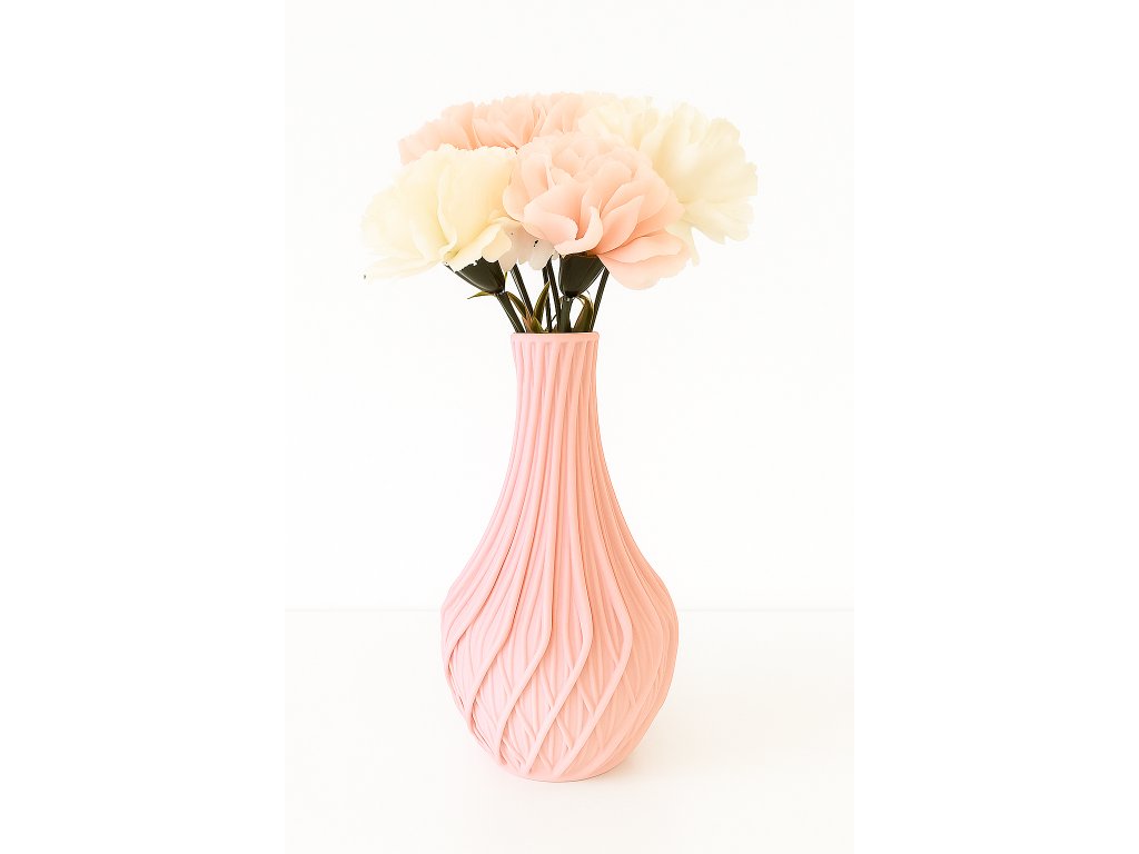 Designová váza Rose kombinuje ladné linie a decentní růžový tón inspirovaný barvou květu růže. Její protáhlý tvar s plastickým reliéfem připomínajícím jemné okvětní plátky působí vzdušně a sofistikovaně. Vyrobena pomocí 3D tisku z kvalitního, lehkého a odolného materiálu, je vhodná pro čerstvé i sušené květiny. Váza krásně vynikne jako solitérní doplněk i v kombinaci s dalšími dekoracemi v podobných pastelových odstínech.