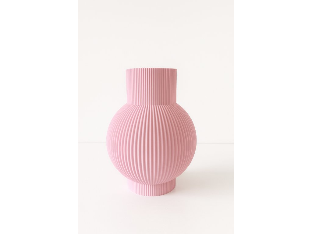 Designová váza Sakura Pink má charakteristický kulovitý tvar, který působí současně moderně i něžně. Jemné svislé žebrování podtrhuje její ladné linie a dodává jí osobitý styl. Vyrobena pomocí 3D tisku z kvalitního, lehkého a odolného materiálu, je ideální pro čerstvé i sušené květiny. Pastelová růžová barva v tónu kvetoucí sakury vnáší do interiéru klid, jemnost a optimismus – skvěle zapadne do minimalistických i útulných domovů.